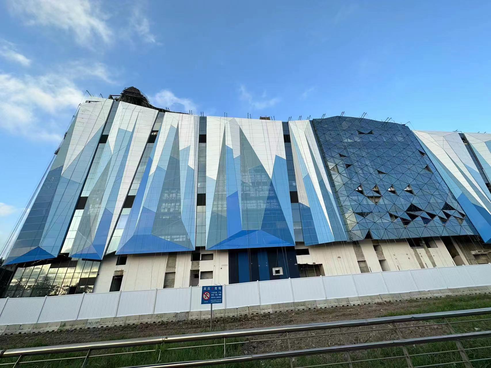 雅泰集團(tuán)承建上海臨港冰雪北區(qū)幕墻整體制作及建設(shè),本項(xiàng)目為菠蘿面異形設(shè)計(jì),充滿現(xiàn)代感的外立面,把冰雪世界的晶瑩閃耀充分展現(xiàn)。與之相匹配的鋁幕墻板的結(jié)構(gòu)復(fù)雜,加工難度較大,全異型、超大、超寬、超長(zhǎng)鋁板,多數(shù)板長(zhǎng)6-7米,且角度尖銳精度要求非常嚴(yán)格。面對(duì)高難度重點(diǎn)工程,雅泰集團(tuán)快速成立項(xiàng)目攻艱突擊隊(duì),選調(diào)管理、設(shè)計(jì)、加工精英,結(jié)合理解冰雪項(xiàng)目設(shè)計(jì)特點(diǎn),最大程度達(dá)成設(shè)計(jì)師初衷。加工團(tuán)隊(duì)對(duì)異型板件進(jìn)行優(yōu)化拆解,分件加工,再進(jìn)行一體化工廠組裝集成。同時(shí)集團(tuán)擁有行業(yè)內(nèi)體量、規(guī)模均在前列,全長(zhǎng)700米的進(jìn)口先進(jìn)噴涂設(shè)備,充分滿足超大、超長(zhǎng)、超寬鋁板的氟碳漆面噴涂完成。