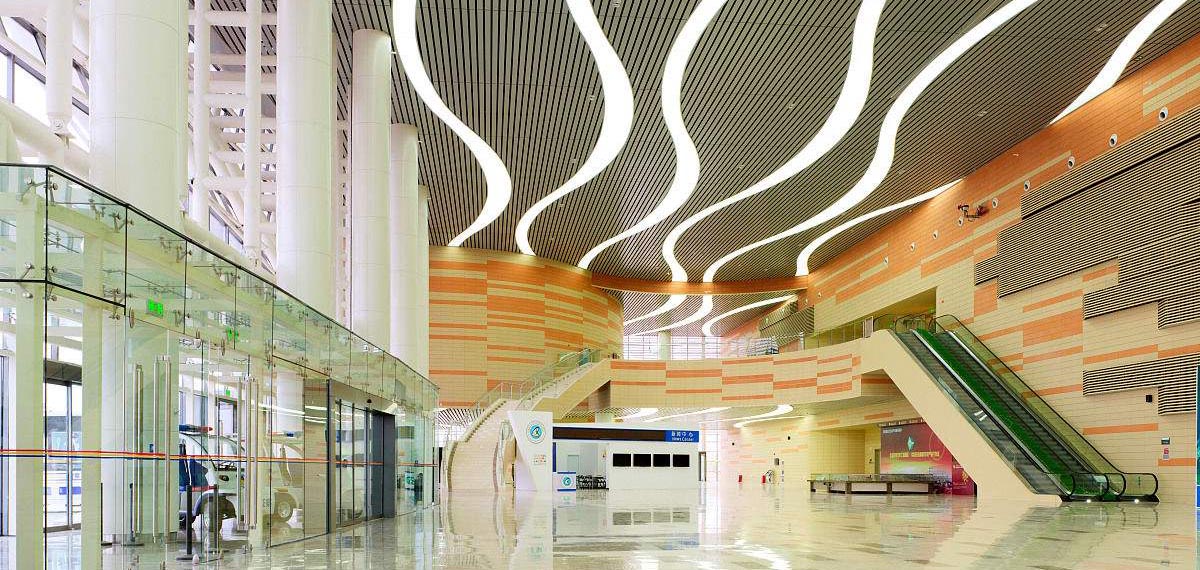 新疆克拉瑪依會(huì)展中心,1期(20,000平方米)和2期(40,000平方米)。1期會(huì)展廳可以被分隔為兩個(gè)各5,5000平方米的廳,公共大堂和廣場是室內(nèi)的,以響應(yīng)克拉瑪依寒冬氣候和盛行風(fēng)。1期的主大堂特意被做成超大尺寸以允許舉辦額外的超大展覽或?yàn)榱藵M足多個(gè)展覽的登記工作;1期大堂也通過人行天橋與2期連接。一個(gè)能夠容納超過300人的會(huì)議區(qū)域被置于大堂的上一層。