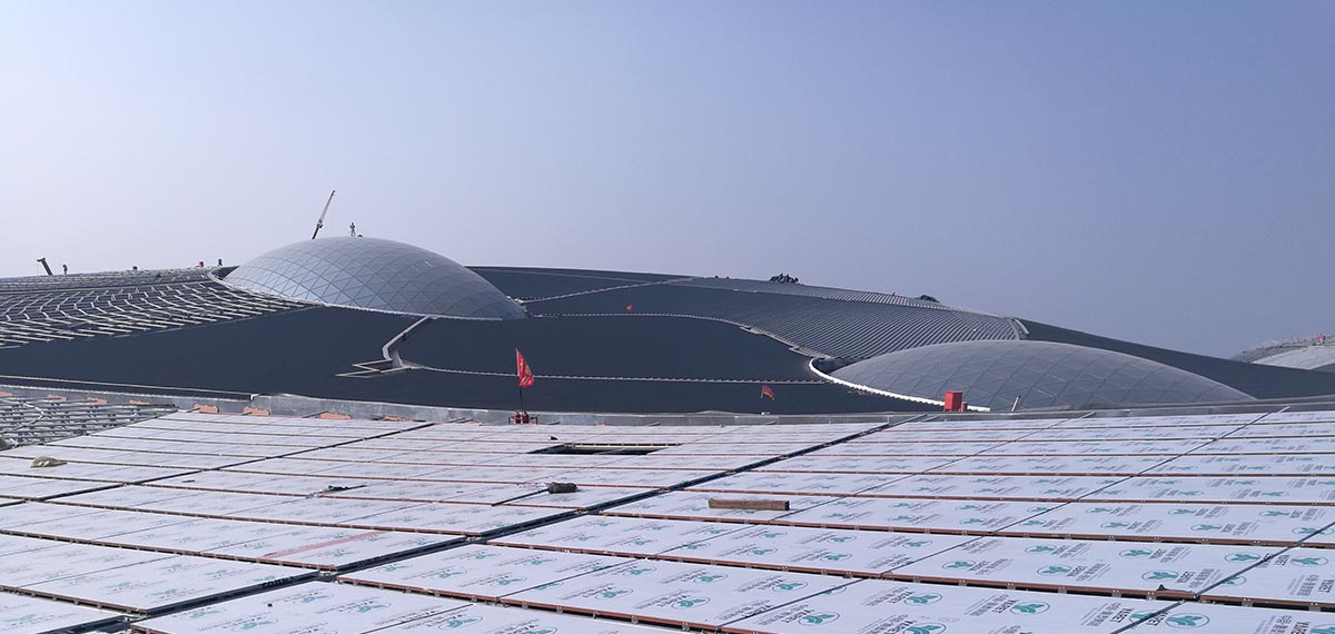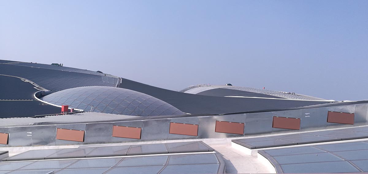 5)屋頂面積:18萬平方米,8根C形柱作支撐,相當于25個標準足球場;